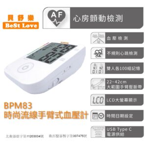 貝舒樂 手臂式血壓計 BPM83 心房顫動檢測