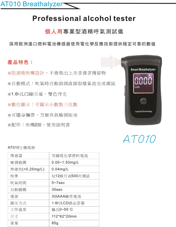 酒測器 AT010, AT010專用吹嘴