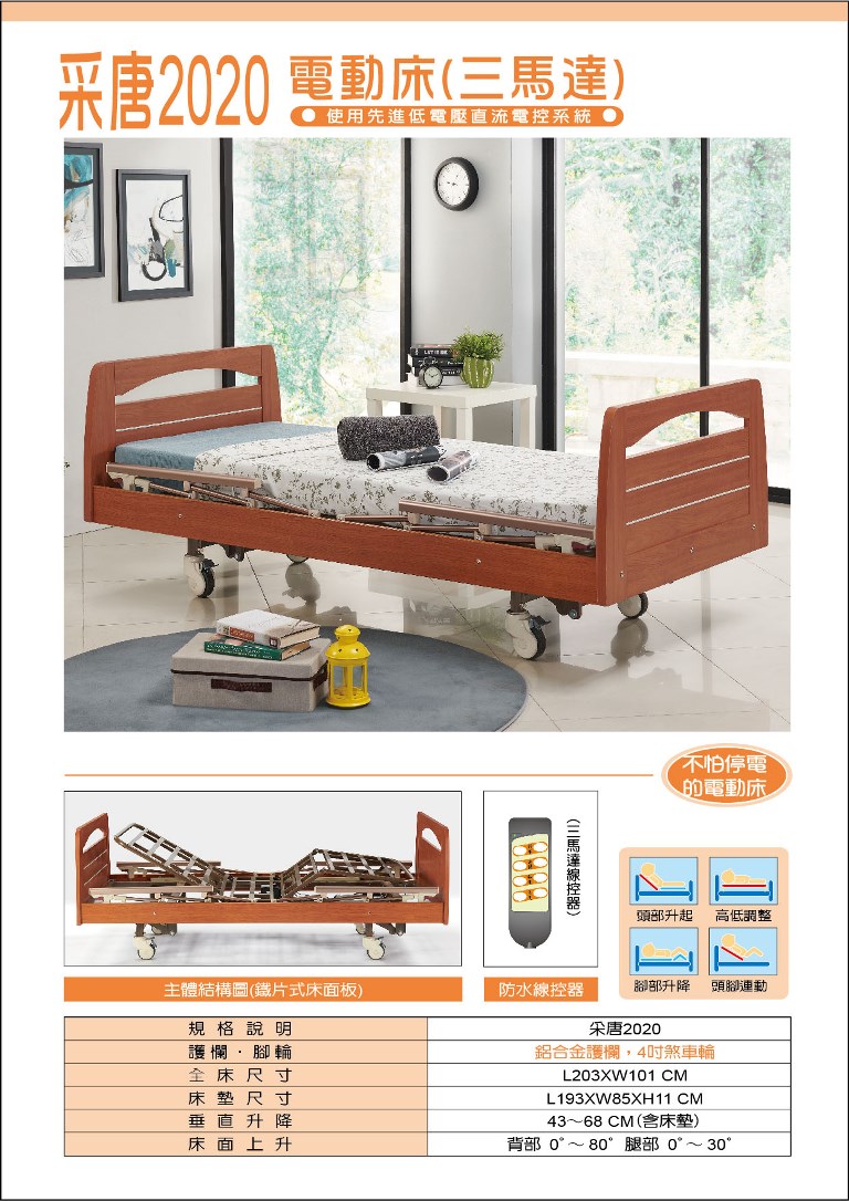 康元 采唐2020 三馬達電動病床 (附輪) 居家用照顧床