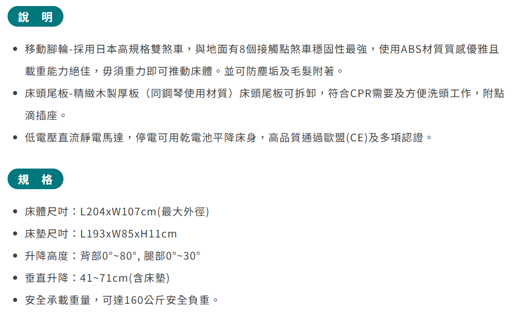 品名 : “康元” 交流電力可調整病床 (未滅菌) 醫療器材許可證核准字號 : 衛部醫器製壹登字第005273號 醫療器材商名稱 : 康元興業有限公司 製造廠名稱 : 城紹科技股份有限公司 製造廠地址 : 桃園縣楊梅市東流里中山南路760號 製造日期 : 詳見產品包裝 有效期間(或保存期限):詳見產品標示 消費者使用前應詳閱產品說明書