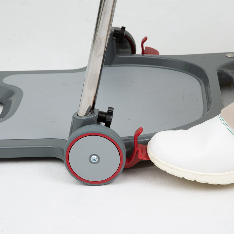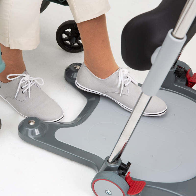 本機獨有的腳部支撐設計,使用者只需使用單手便可輕鬆調整操作。 即使在空間侷促的環境,本機設計的輪鎖(左輪或右輪)可在需要時提供及時的煞車功能。 腳踏板部分之細顆粒表面處理亦有防滑功能,握把的設計也便於使用者維持身體穩固。