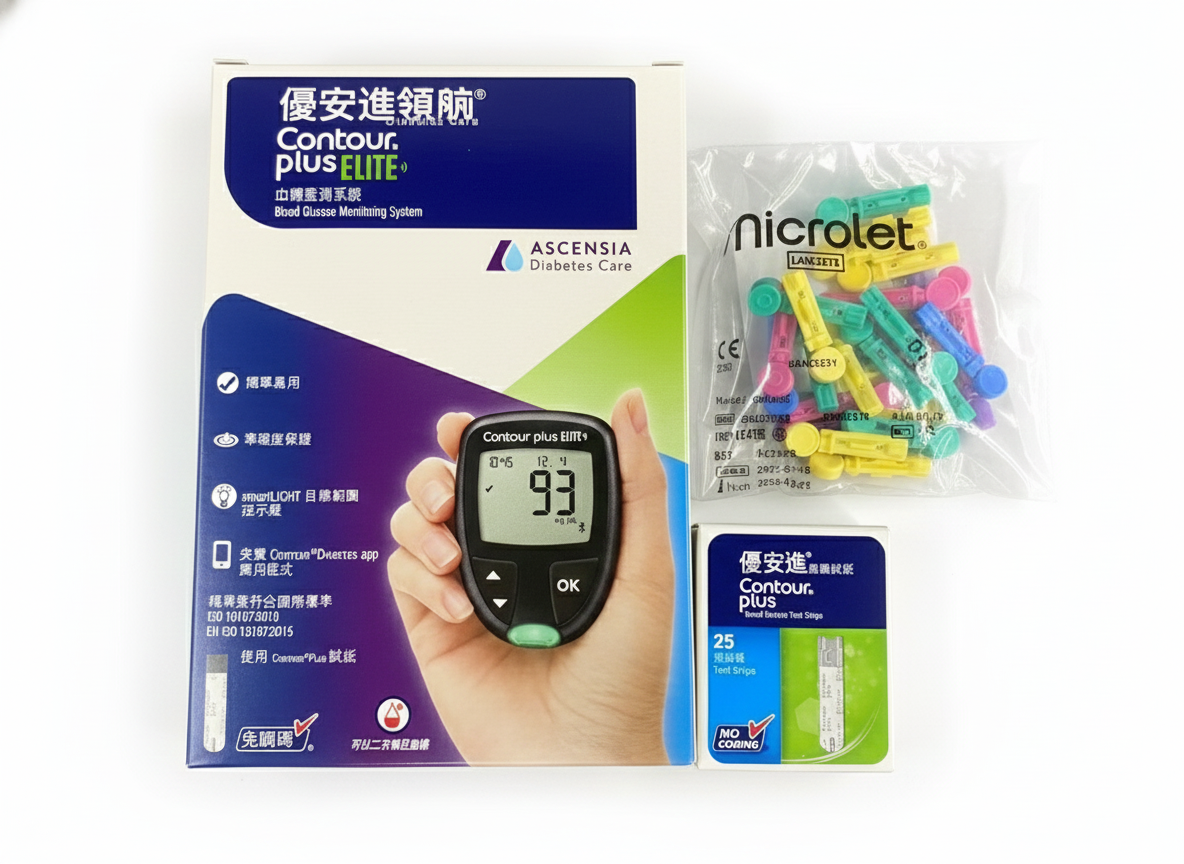 內容物包含:主機+採血筆、試紙25片、採血針25支