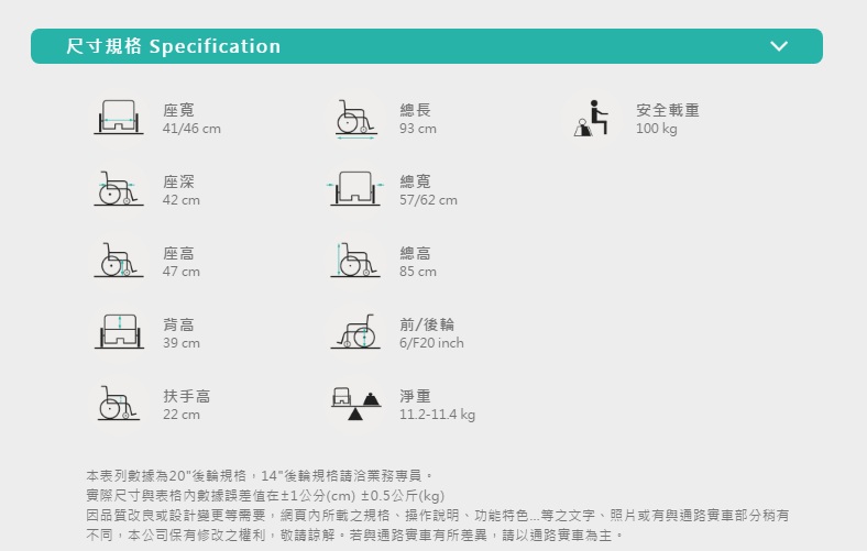 品名 : “康揚”鋁合金輪椅(未滅菌)/ “康揚”手動輪椅 (未滅菌)