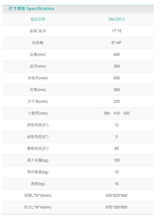 品名 : “康揚”鋁合金輪椅(未滅菌)/ “康揚”手動輪椅 (未滅菌) 醫療器材許可證核准字號 : 衛署醫器輸壹字第004939號 / 衛署醫器陸輸壹字第001563號 藥商名稱 : 康揚股份有限公司 製造廠名稱 : KARMA MOBILITY CO., LTD / HUZHOU CONCORD MOBILITY CO., LTD. 製造廠地址 : 30 MOO 7 TAMBOL KHAMTALESO AMPHUR KHAMTALESO NAKHONRATCHASIMA 30280 THAILAND / NO.618 GANSHAN ROAD HU-ZHOU CITY, ZHE-JIANG P.R.CHINA 製造日期 : 詳見產品包裝標示 有效期間(或保存期限): 詳見產品包裝標示 消費者使用前應詳閱醫療器材說明書