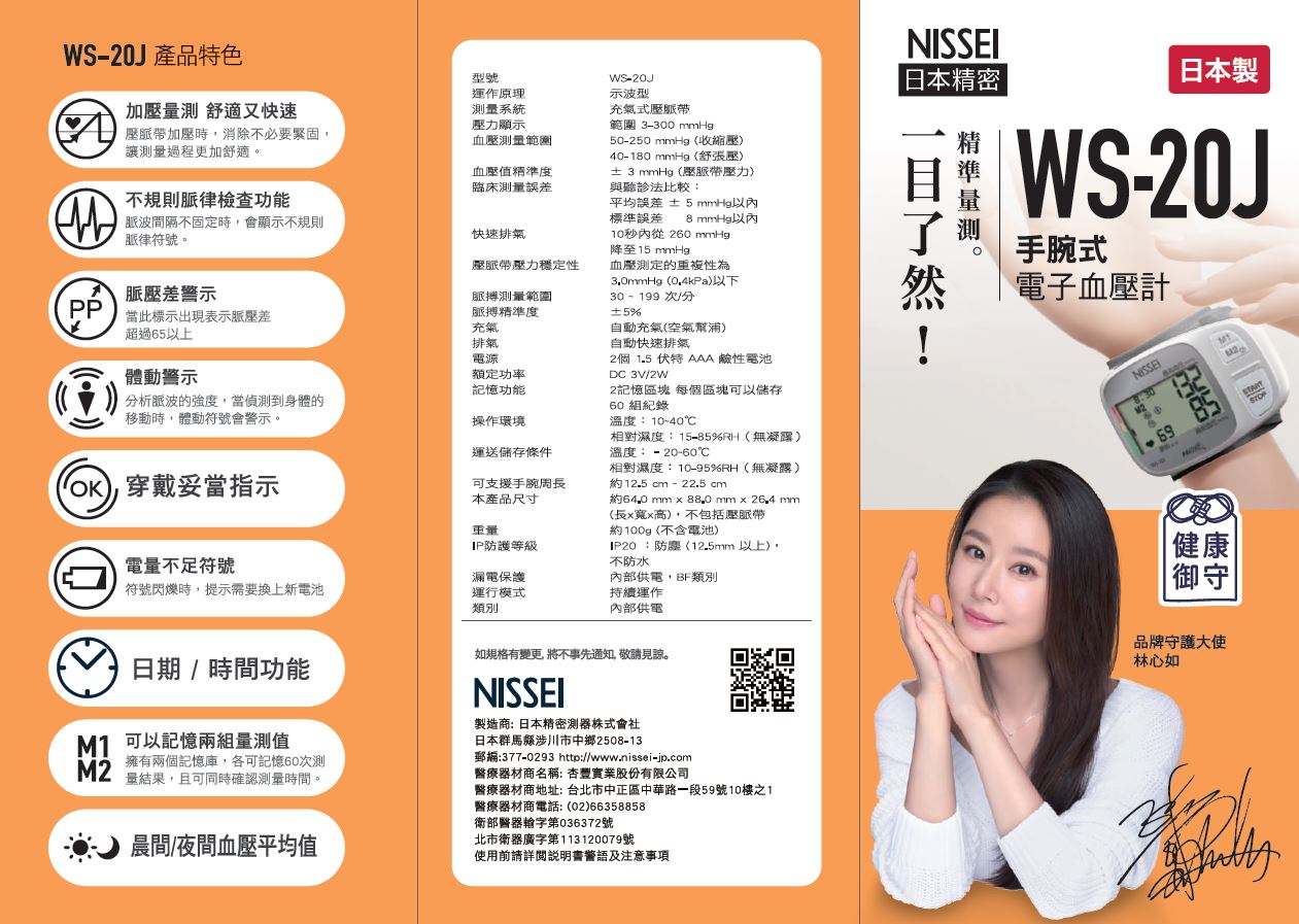 NISSEI 日本精密手腕式電子血壓計 WS-20J 雙人記憶