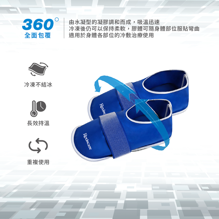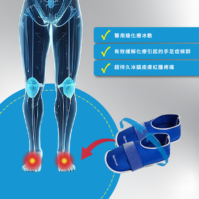 手足症候群症狀與掉髮可透過低溫冰敷方式, 經實驗室精心研發,瑞斯冰敷手套及拖鞋最低溫度可維持在−10至 −20°C區間 減少因溫度過低為患者帶來的不適感,且幫助減輕化療後手足症候群症狀 有效減輕化療引起的手部末梢神經損傷與不適感及掉髮等症狀。 適用於腳部使用,鞋套型設計便利配戴及包覆性佳。 材質:NYLON(尼龍)+PVC(聚氯乙烯)|內容物:纖維凝膠 尺寸:30.5 x 13.5cm (單只腳套)