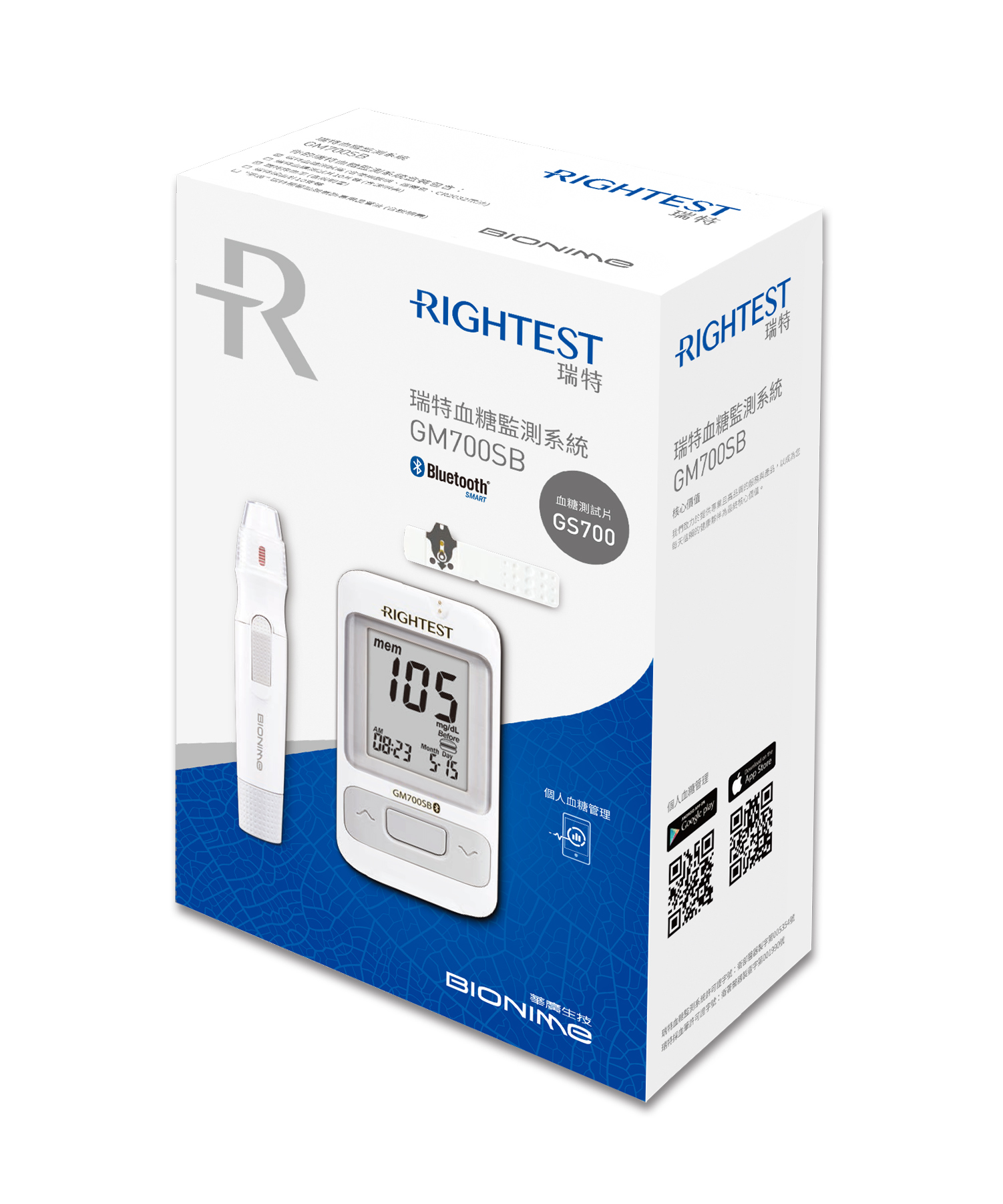 內容物包含:主機+採血筆、試紙100片、採血針100支、酒精棉片100片