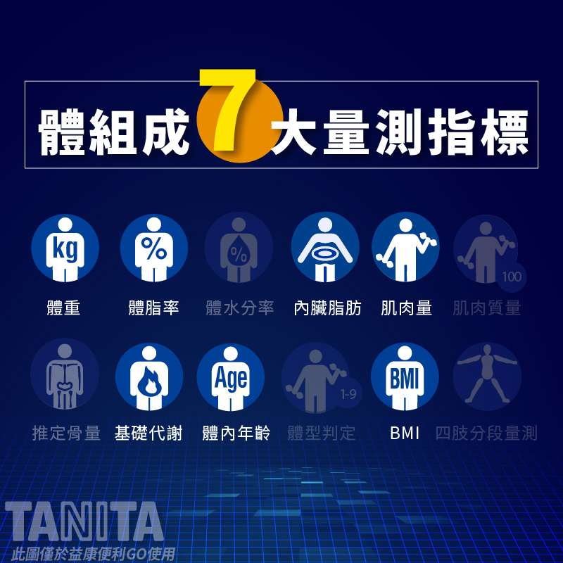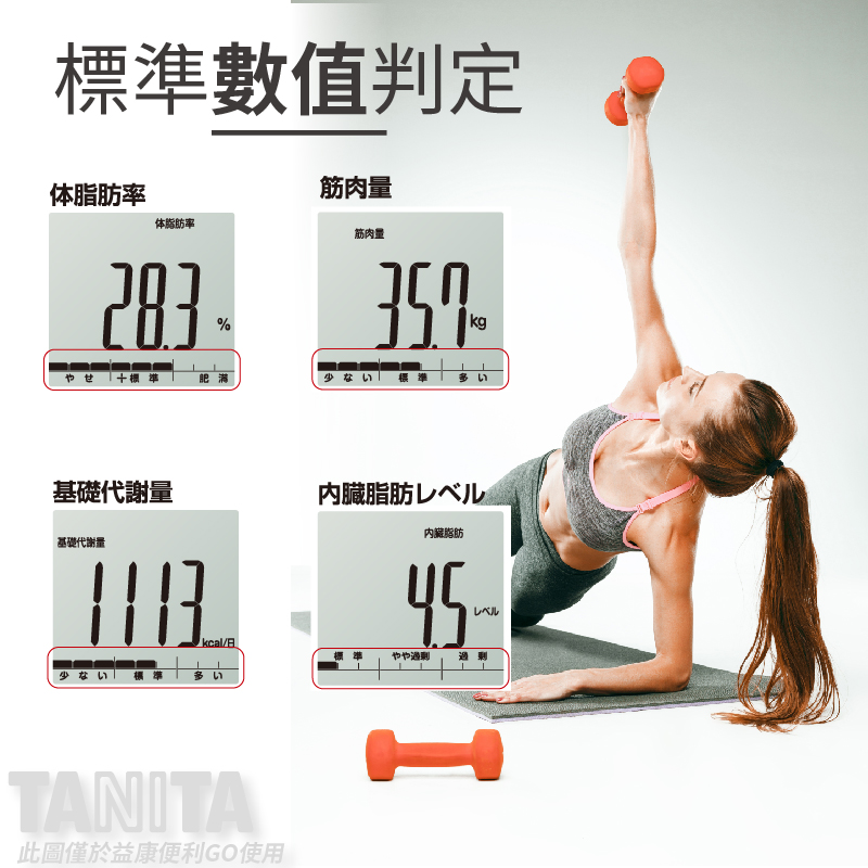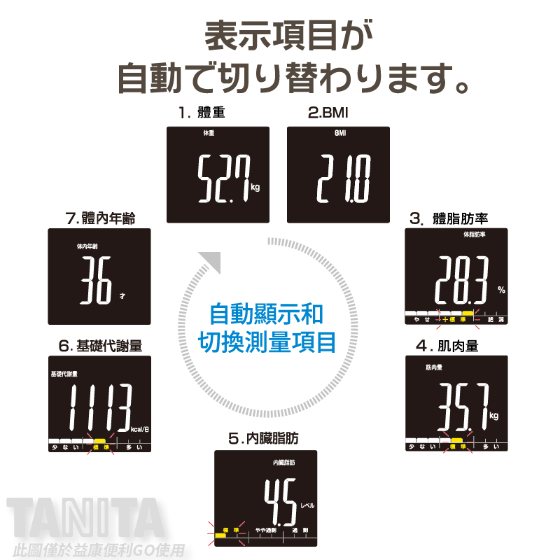 ★日本製 ★七合一體組成數值量測 ★體脂肪率、肌肉量、內臟脂肪指數、基礎代謝量標準判定 ★可登錄5位用戶,具自動辨識功能