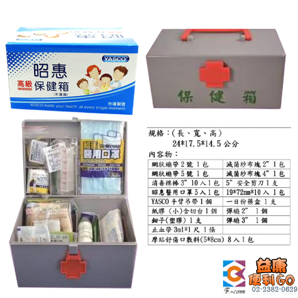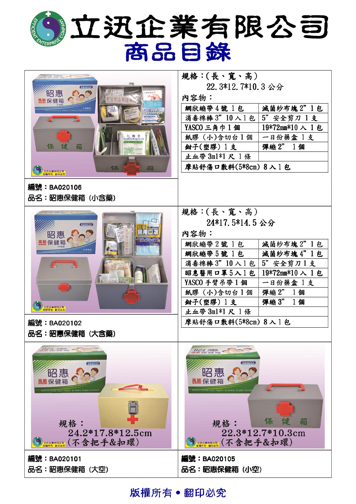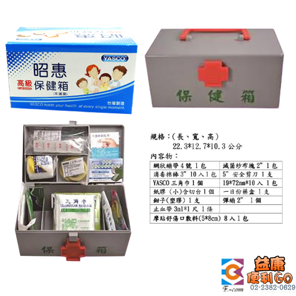 醫療器材許可證核准字號:衛部醫器製壹字第005291號 中文品名:“昭惠”保健箱(未滅菌) 藥商名稱:昭惠實業股份有限公司嘉義廠 藥商地址:嘉義縣朴子市大鄉里大槺榔179之52號 製造廠名稱:昭惠實業股份有限公司嘉義廠 製造廠地址:嘉義縣朴子市大鄉里大槺榔179之52號