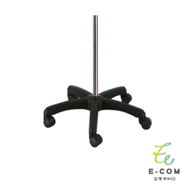 規格: – 高度可從165cm調高到250cm。 – 高度控制採用手壓式開關。 – 上架採用φ6分(19mm)x1.0mm不鏽鋼圓管。 – 下架採用φ1″(25mm)x1.0mm不鏽鋼圓管。 – 五爪底座為塑鋼材質直徑長53cm。附五個2″活動塑膠輪。 – 所有尺寸±5%。
